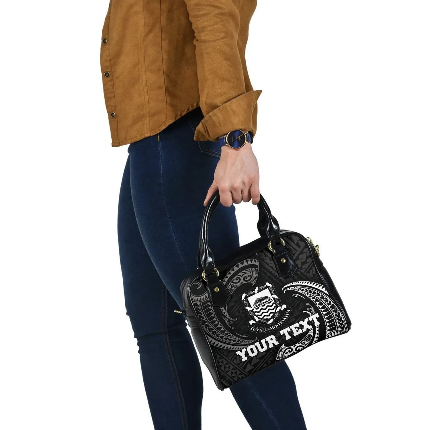 Tuvalu Polynesian Custom Personalised Shoulder Handbag - White Tribal Wave