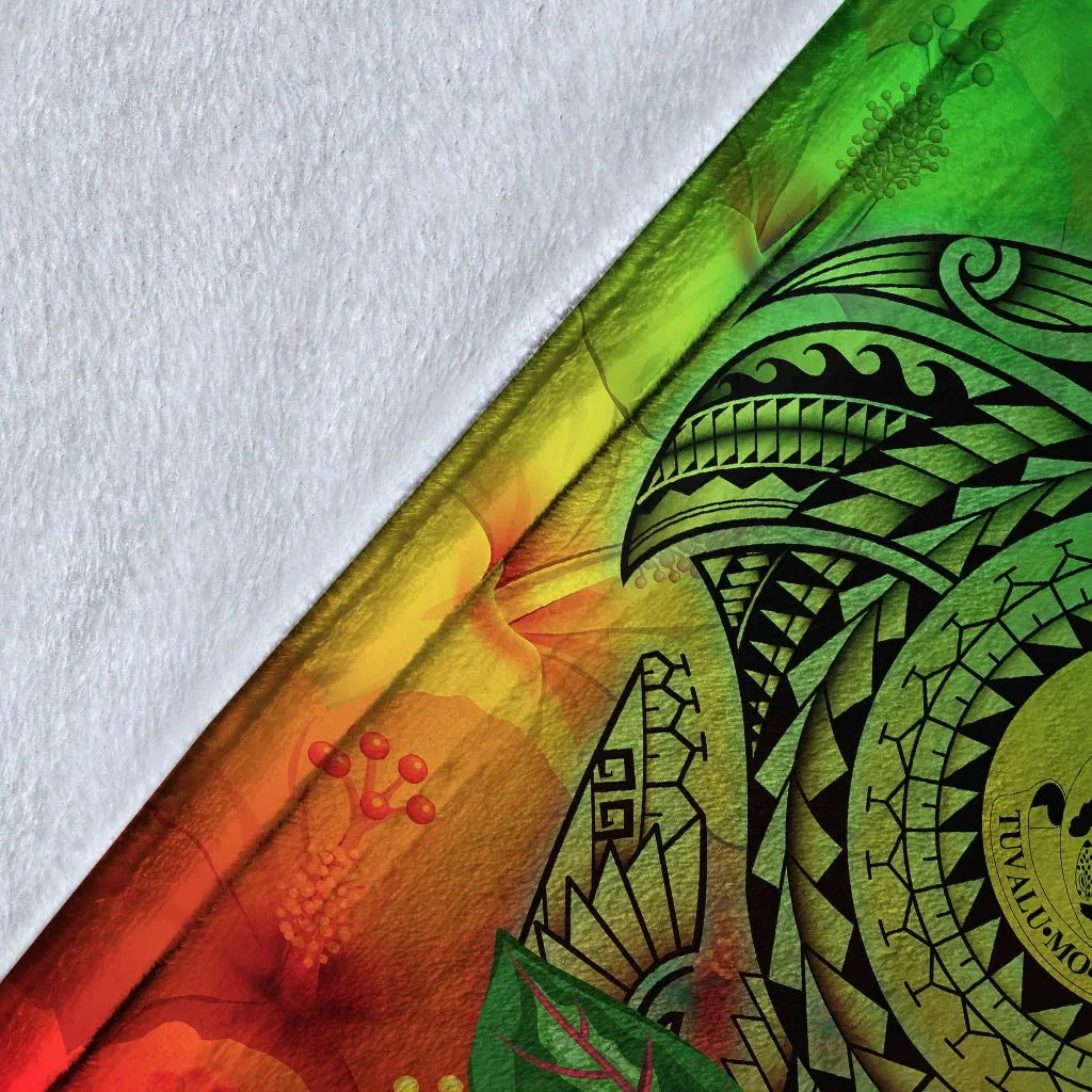 Tuvalu Premium Blanket - Manta Ray Tropical Flowers (Green)