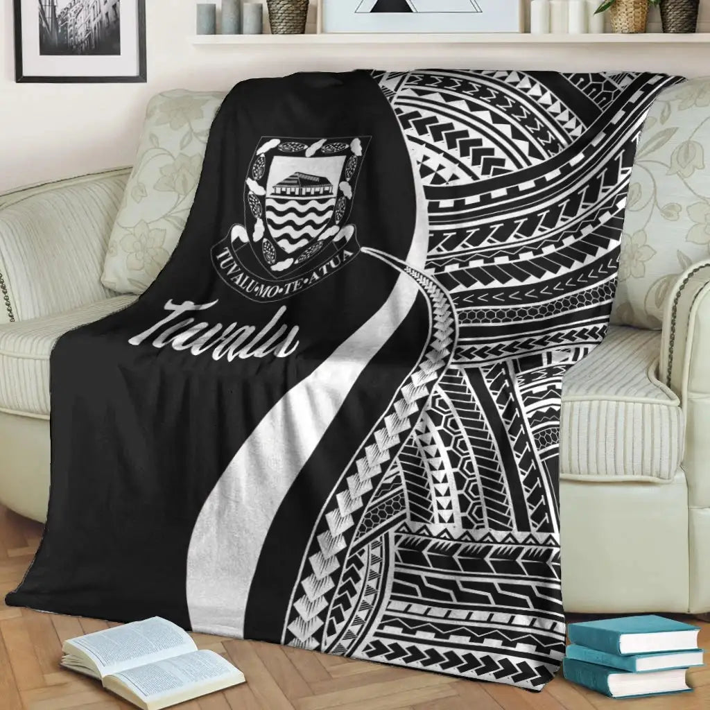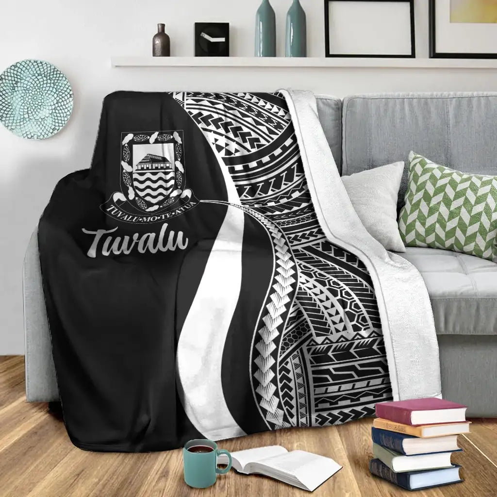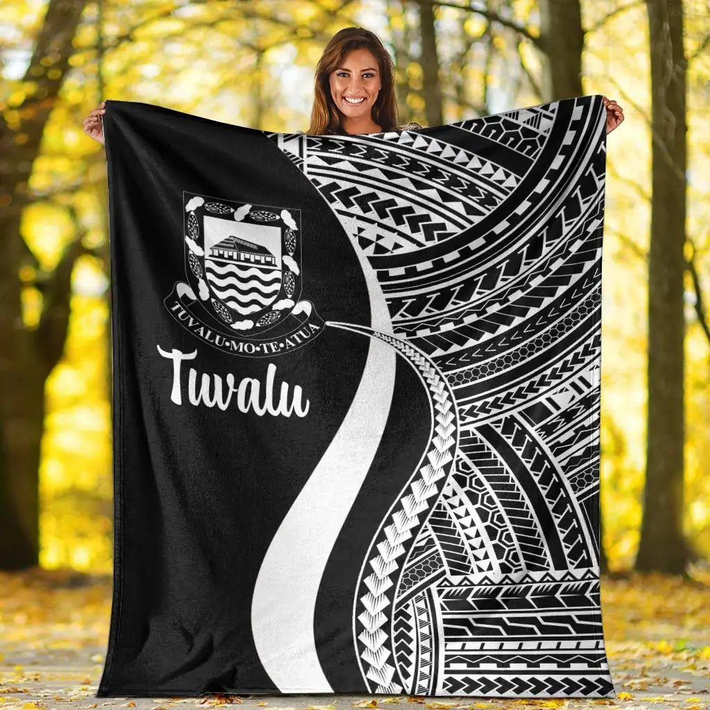 Tuvalu Premium Blanket - White Polynesian Tentacle Tribal Pattern