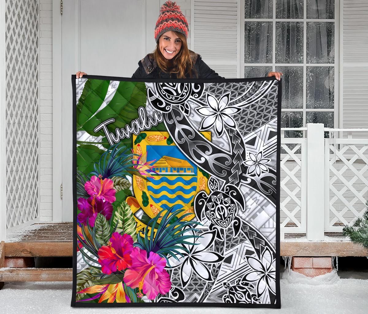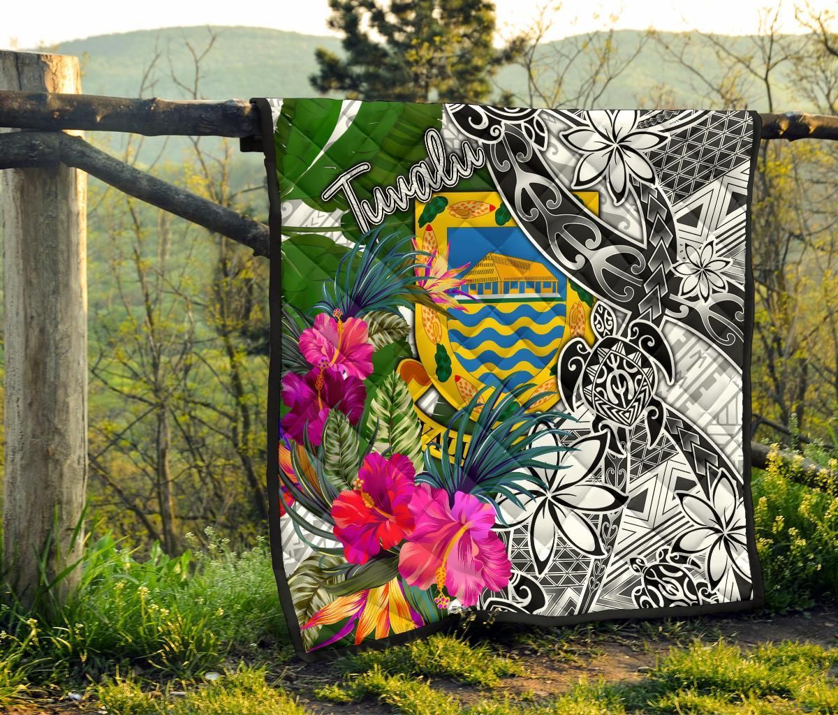 Tuvalu Premium Quilt White - Turtle Plumeria Banana Leaf