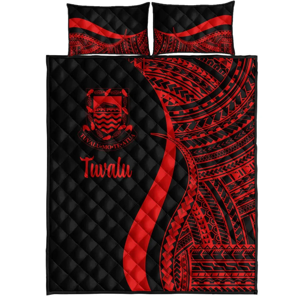 Tuvalu Quilt Bed Set - Red Polynesian Tentacle Tribal Pattern