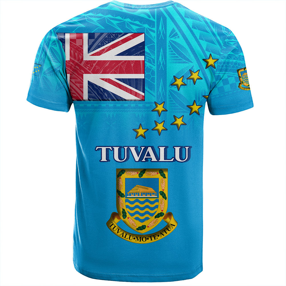 Tuvalu T-Shirt Flag Color With Traditional Patterns