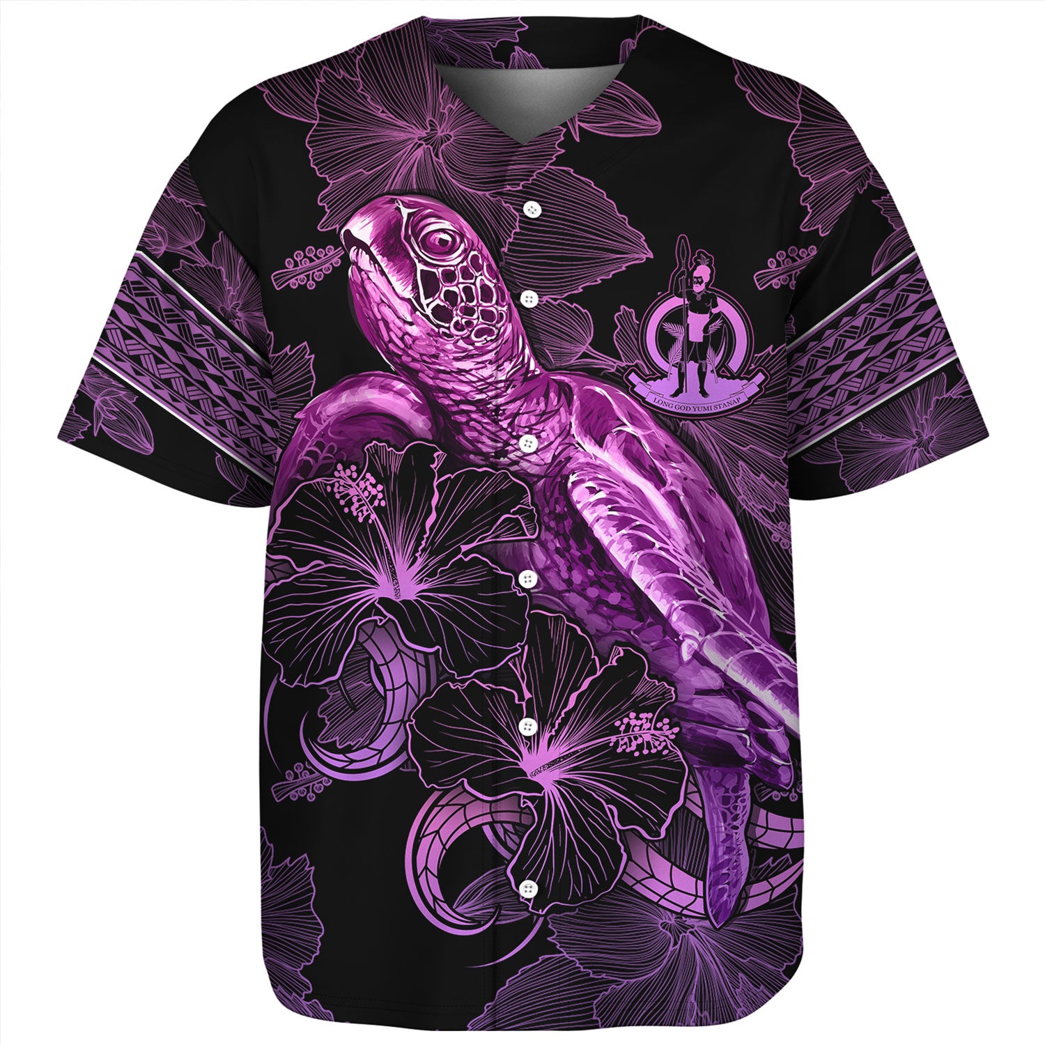 Vanuatu Baseball Shirt Sea Turtle With Blooming Hibiscus Flowers Tribal Purple