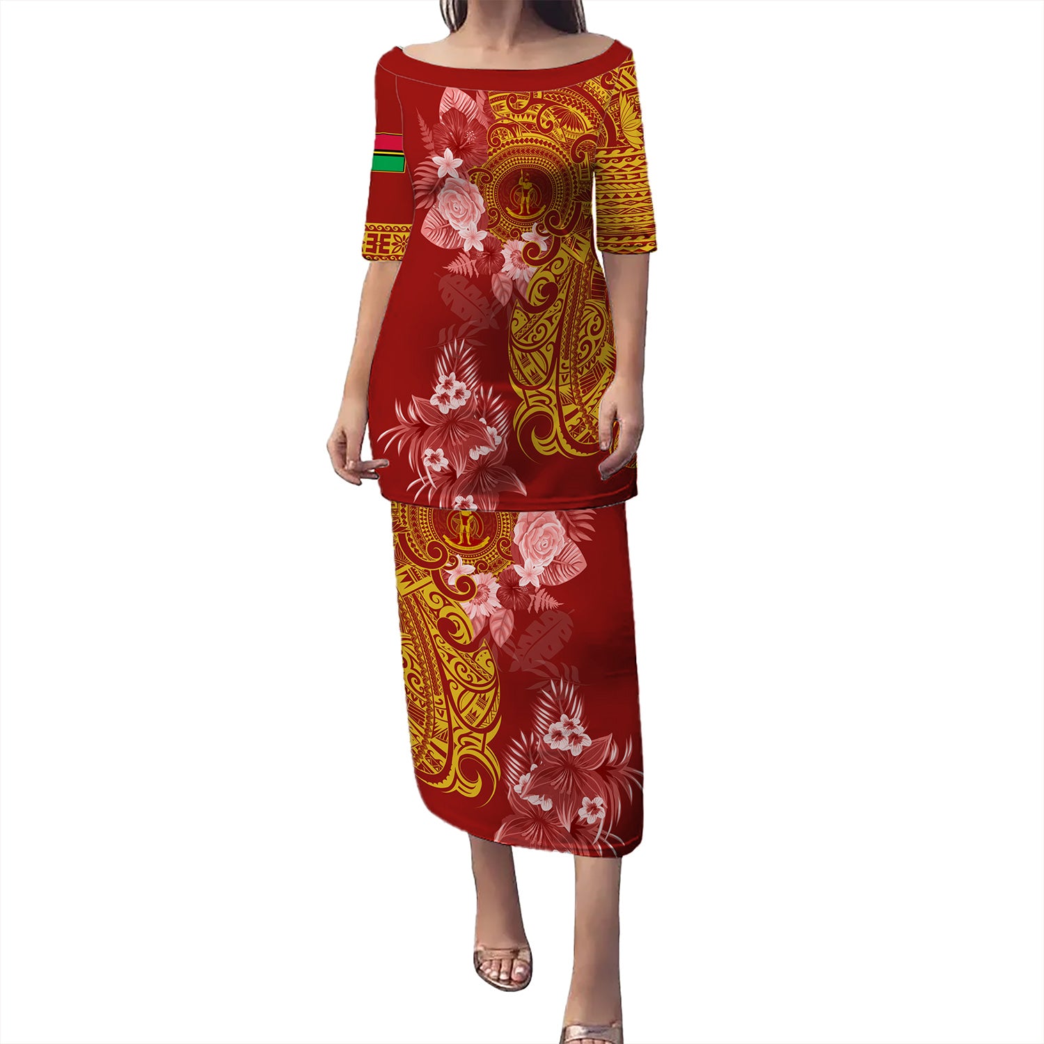 Vanuatu Combo Puletasi And Shirt Polynesian Tropical Plumeria Tribal Red