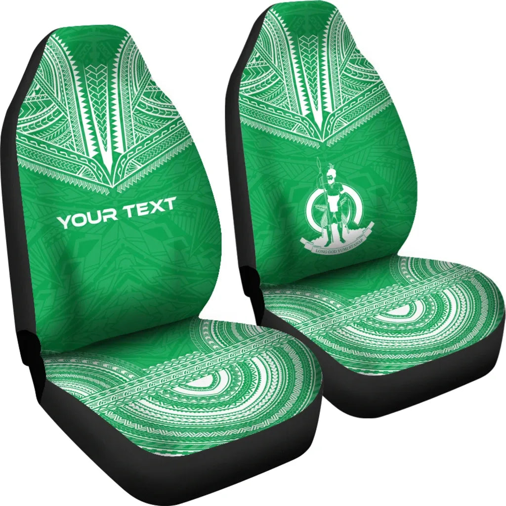 Vanuatu Custom Personalised Car Seat Cover - Vanuatu Coat Of Arms Polynesian Chief Tattoo Green Version