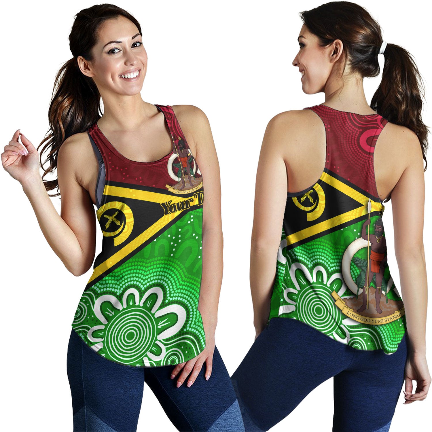 Vanuatu Custom Personalised Women Tank Vanuatu Seal With Aboriginal Patterns Style
