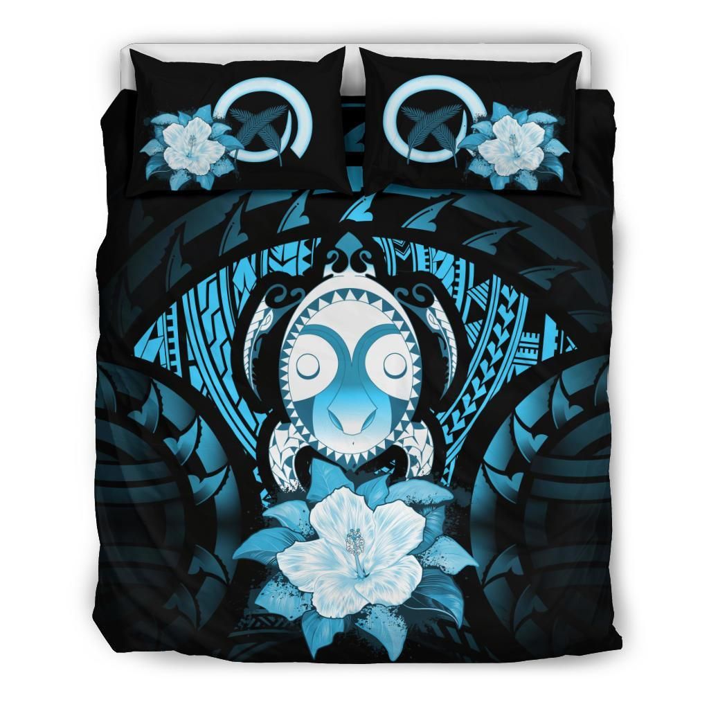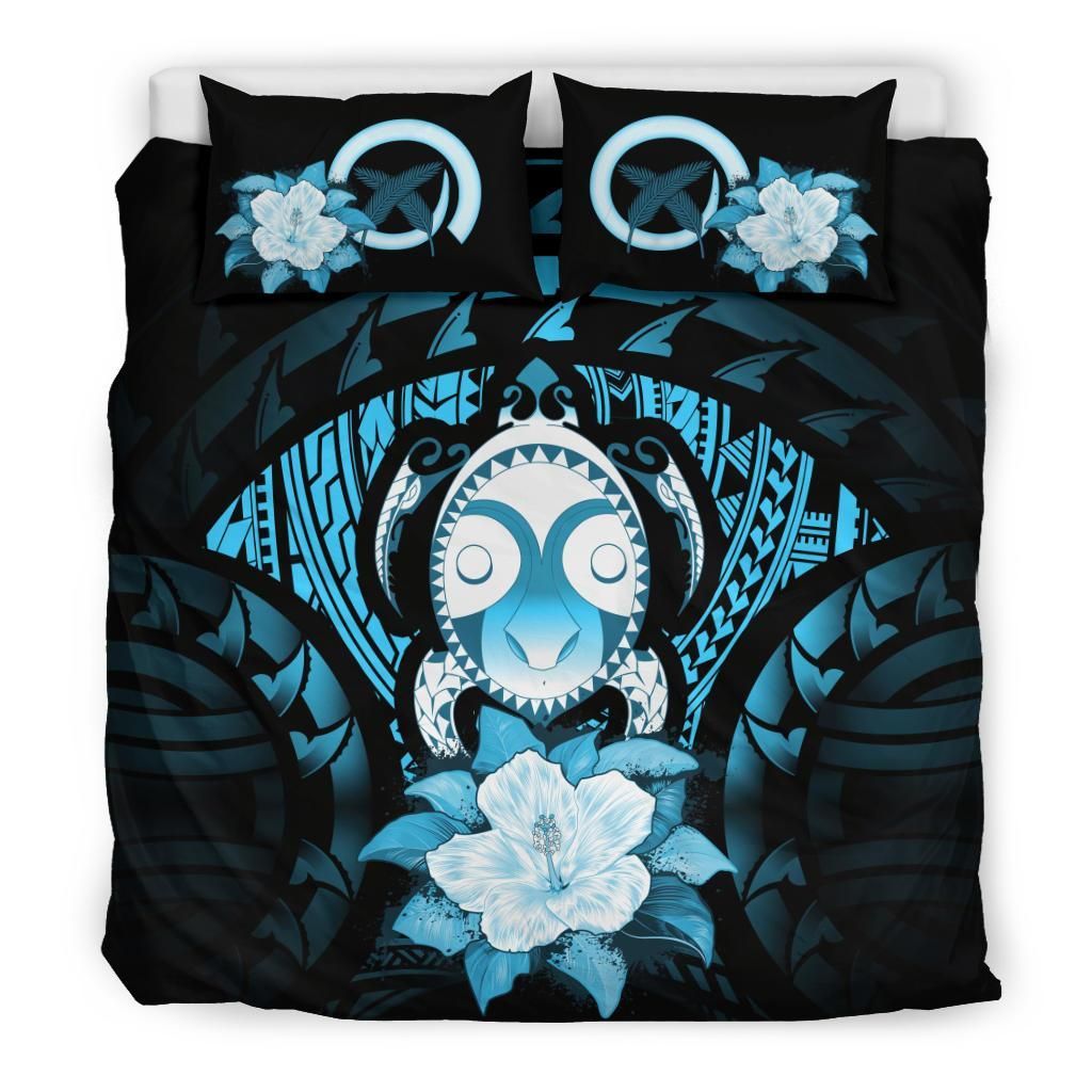 Vanuatu Duvet Cover Set - Turtle Tiki Face &Turquoise Hibiscus