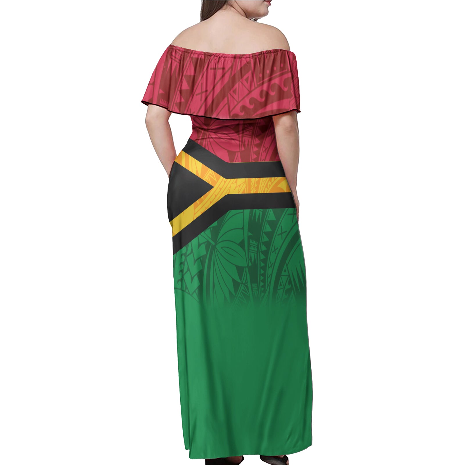 Vanuatu Flag Color With Traditional Patterns Women Off Shoulder Long Dress
