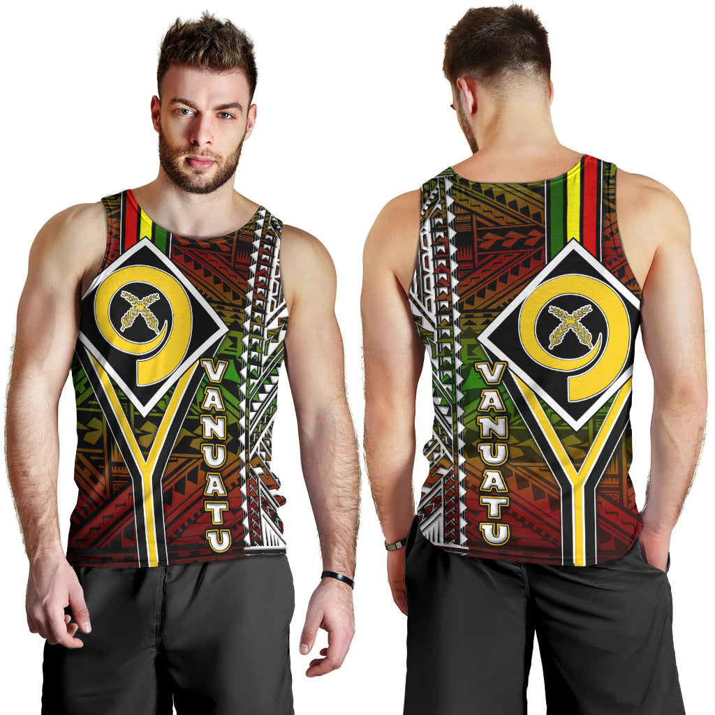 Vanuatu Men Tank Top - Vanuatu Independence Anniversary Flag Style Polynesian Patterns