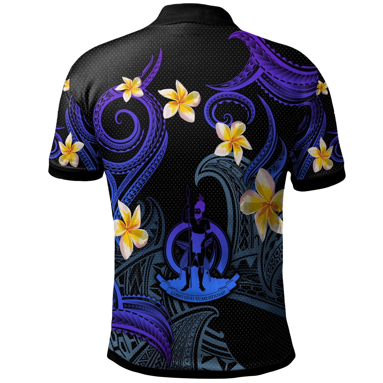 Vanuatu Polo Shirt - Custom Personalised Polynesian Waves with Plumeria Flowers (Blue)