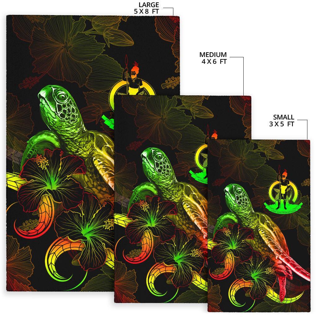 Vanuatu Polynesian Area Rugs - Turtle With Blooming Hibiscus Reggae