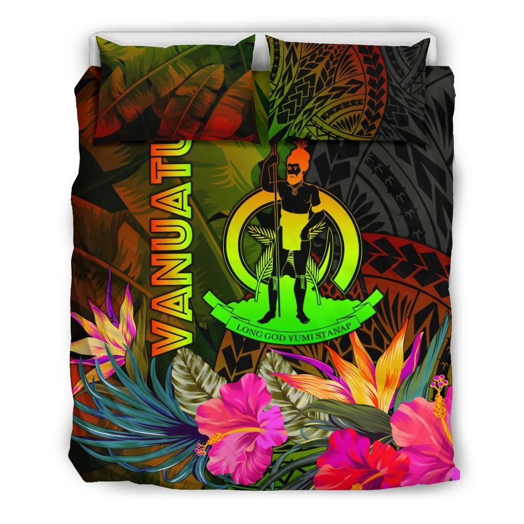 Vanuatu Polynesian Bedding Set - Hibiscus And Banana Leaves