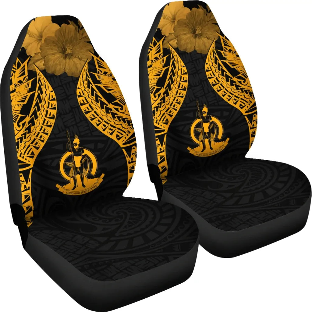 Vanuatu Polynesian Car Seat Covers Pride Seal And Hibiscus Gold