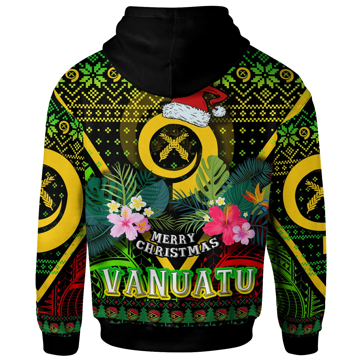 Vanuatu Polynesian Christmas Hoodie - Custom Vanuatu Coat of Arms Christmas Hat Polynesian Patterns Hoodie