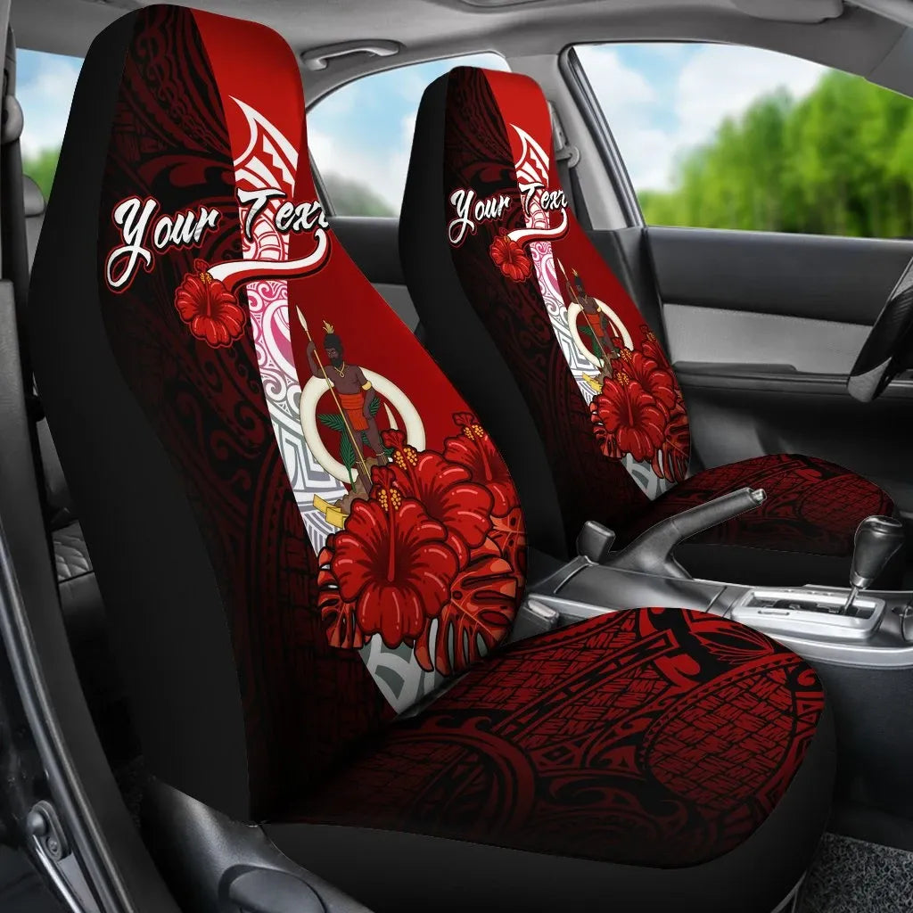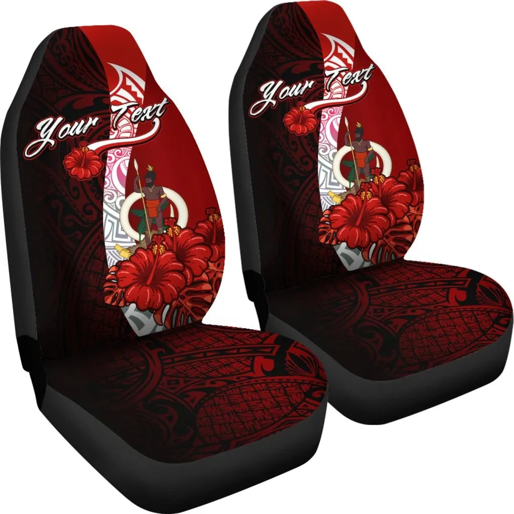 Vanuatu Polynesian Custom Personalised Car Seat Covers - Coat Of Arm With Hibiscus