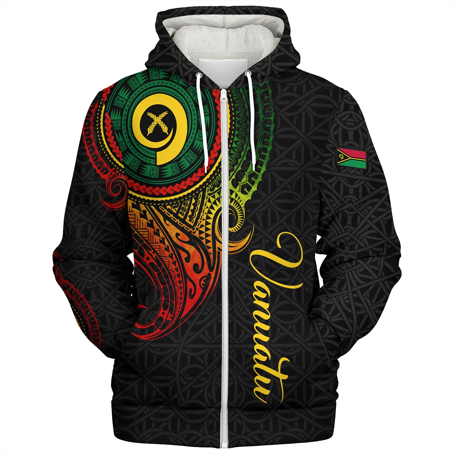 Vanuatu Sherpa Hoodie Custom Vanuatu Seal Mutis En Atan Patterns Reggae Color