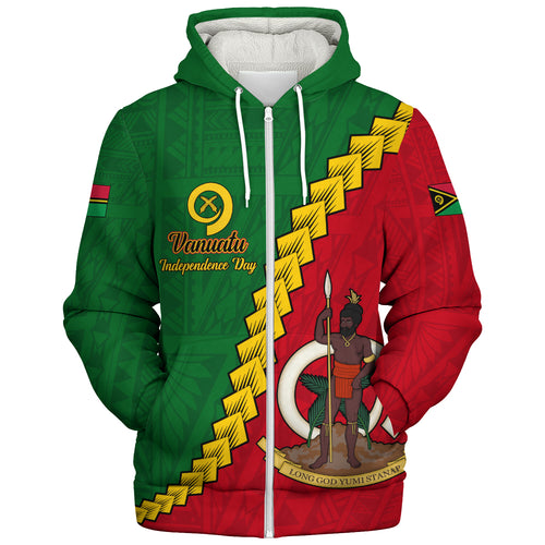 Vanuatu Sherpa Hoodie Tribal Coat Of Arms With Flag Independence Day