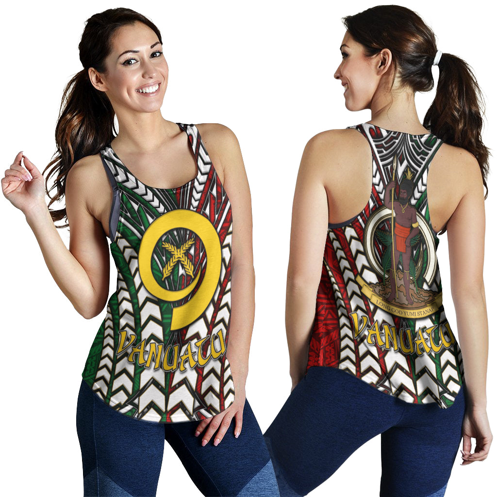 Vanuatu Women Racerback Tank - Vanuatu Independence Anniversary With Arm Polynesian Patterns