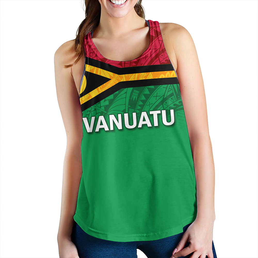 Vanuatu Women Tank - Flag Color With Traditional Patterns