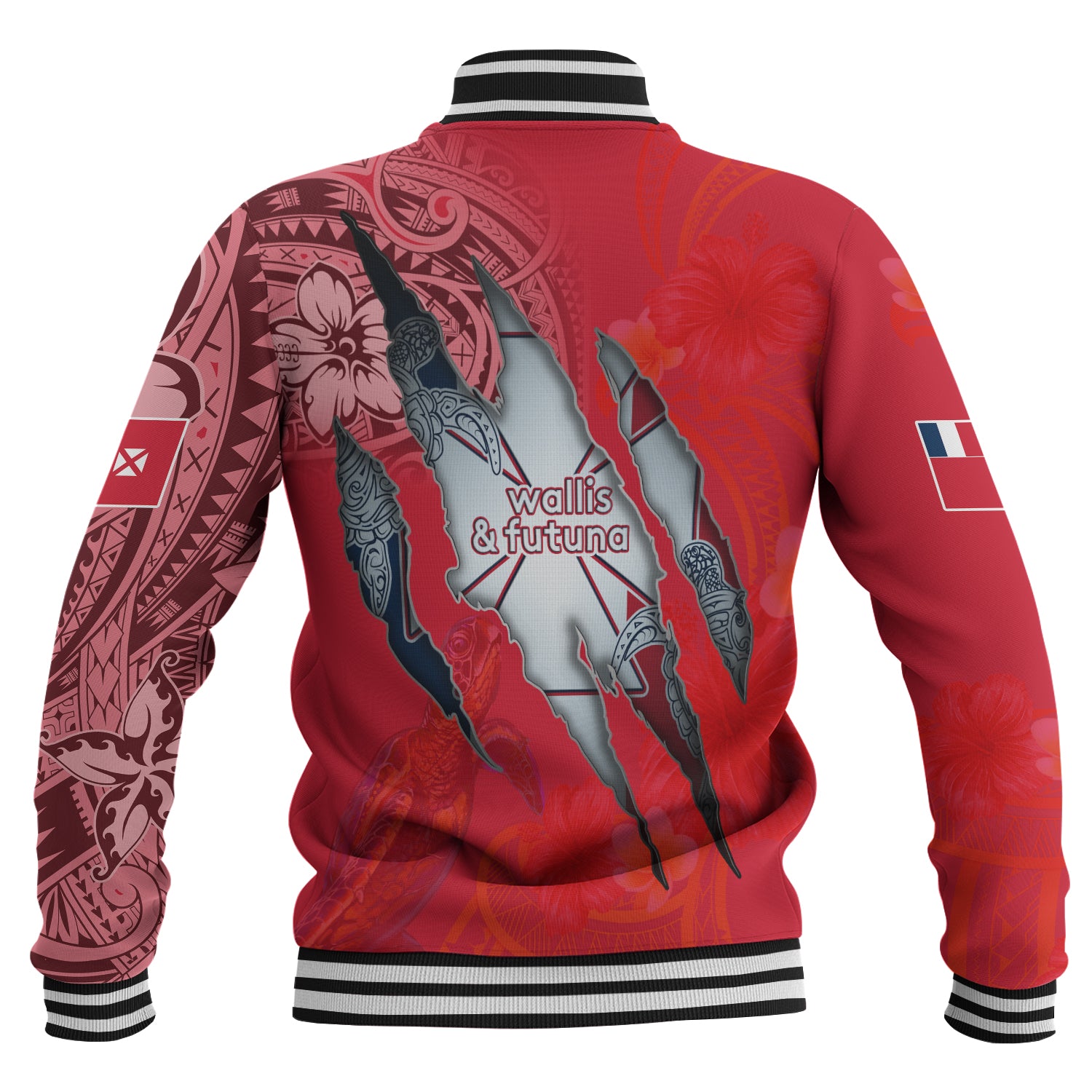 Wallis And Futuna Baseball Jacket Custom Wallisian Futunan Blood Inside Me Polynesian Sleeve Tattoo Tropical Red