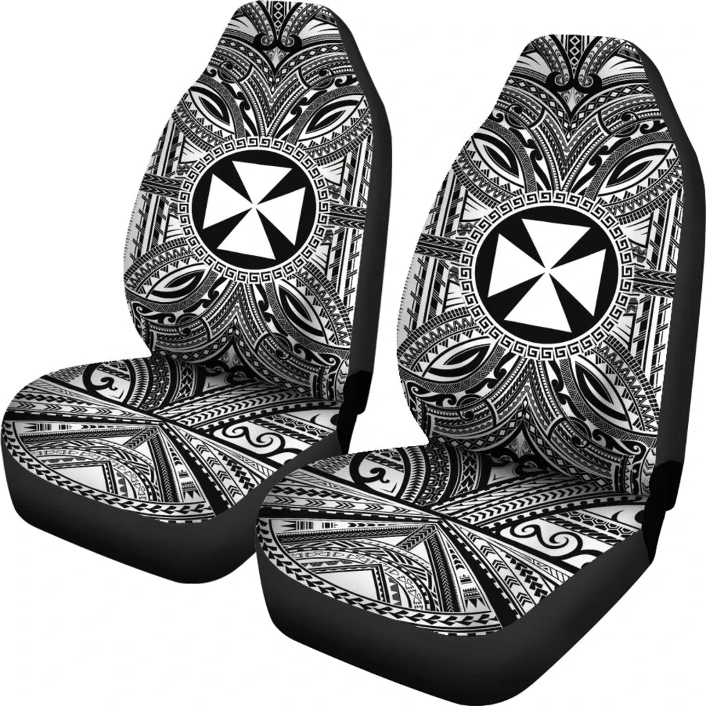 Wallis and Futuna Car Seat Cover - Wallis and Futuna Coat Of Arms Polynesian White Black
