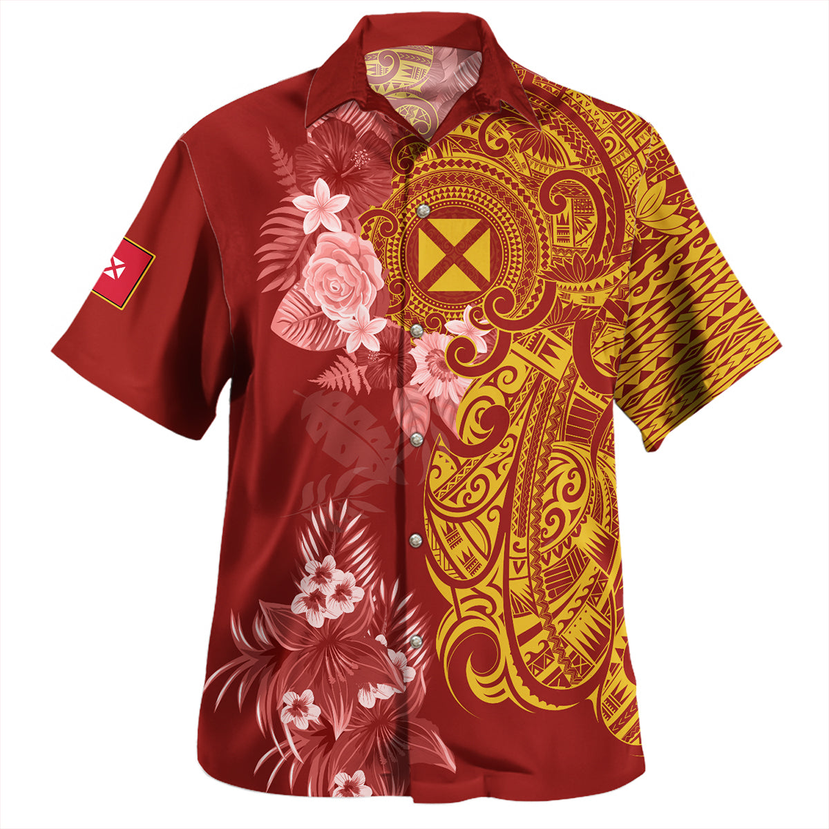 Wallis And Futuna Combo Off Shoulder Long Dress And Shirt Polynesian Tropical Plumeria Tribal Red