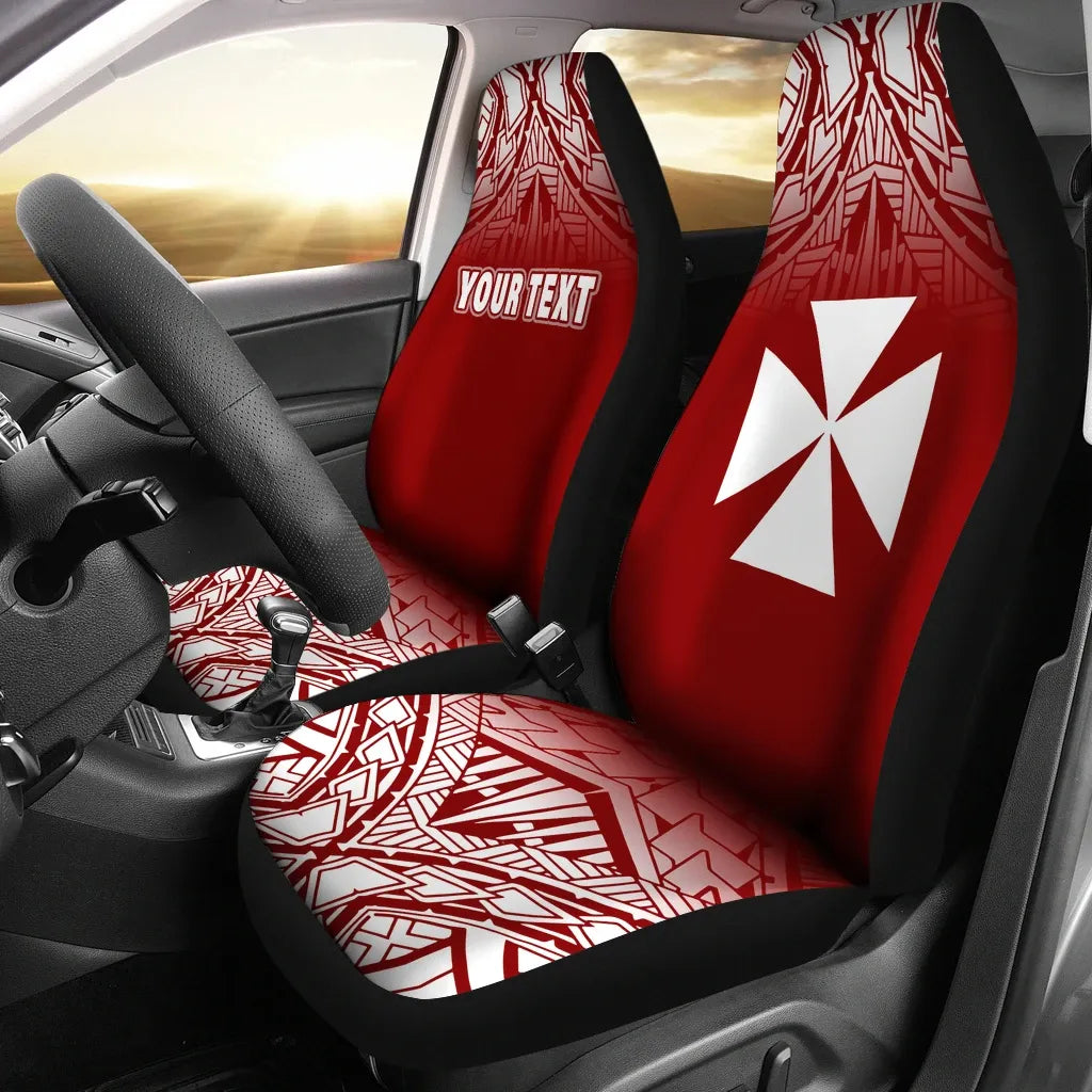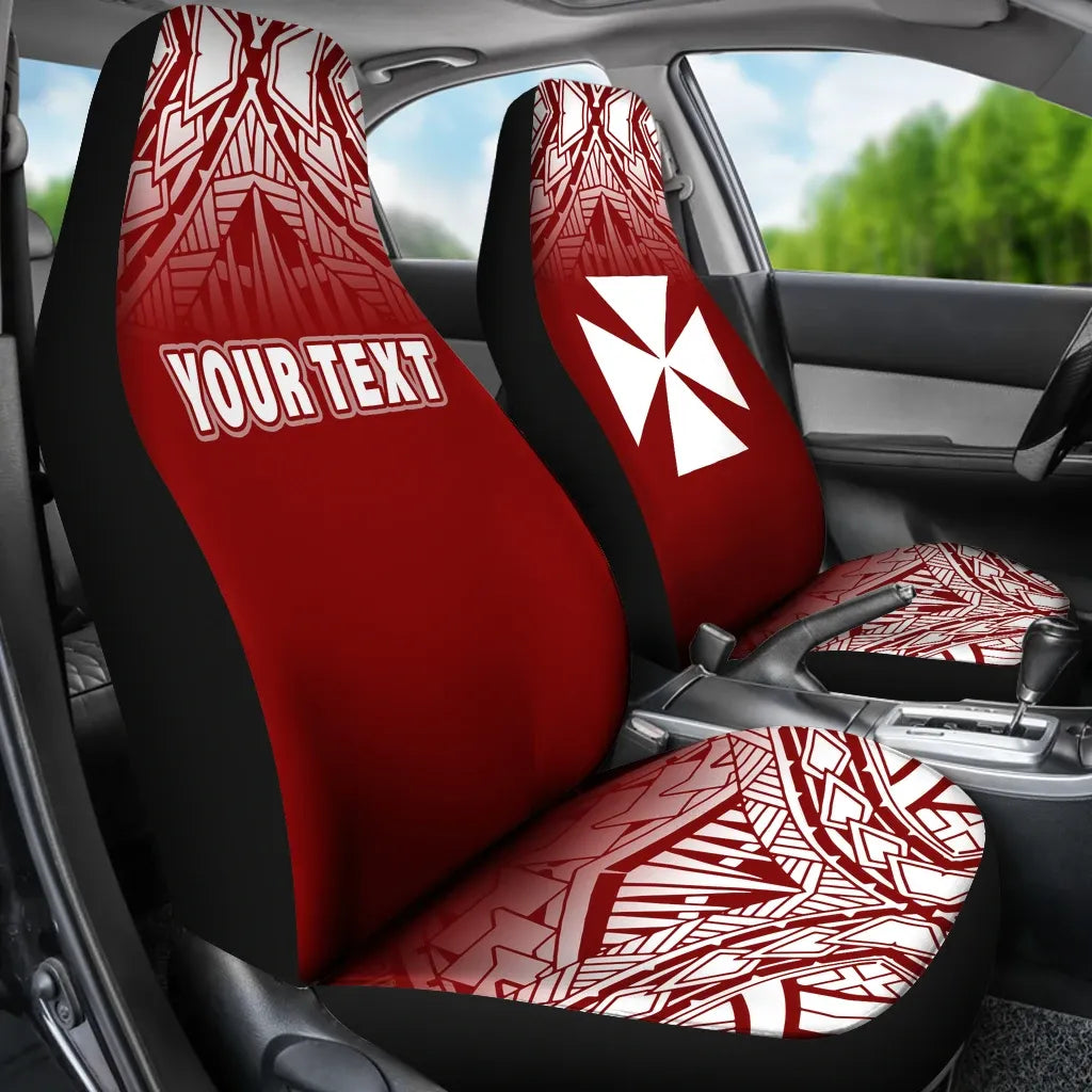 Wallis and Futuna Custom Personalised Car Seat Covers - Wallis and Futuna Coat Of Arms Polynesian Tattoo Fog Red