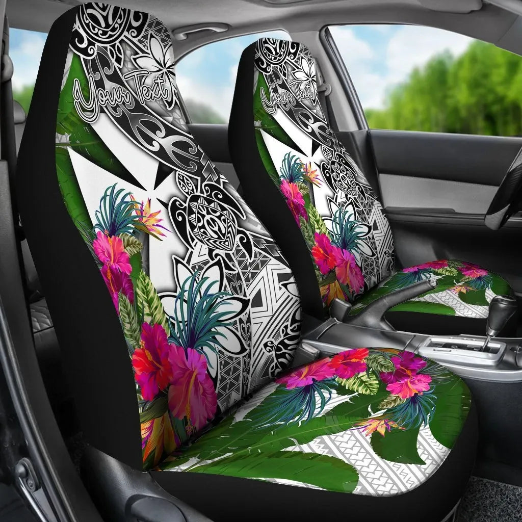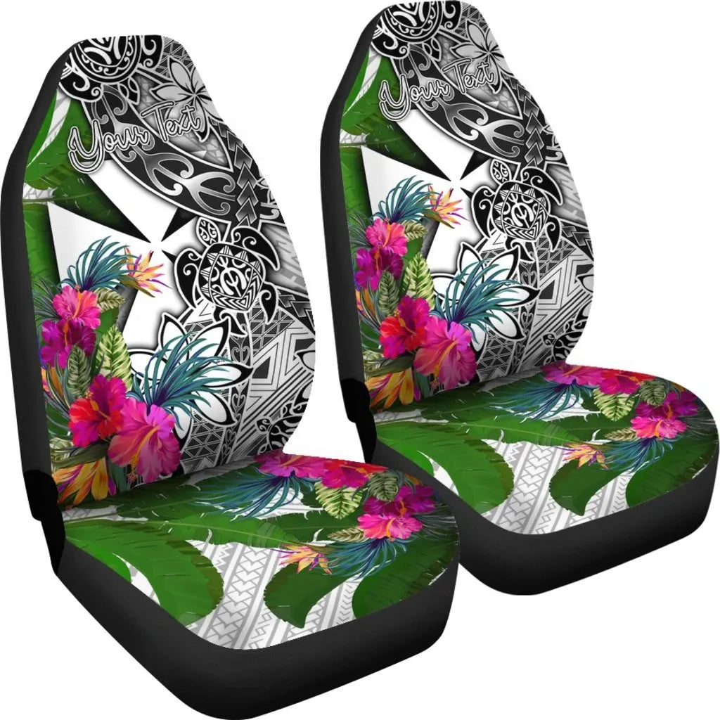 Wallis And Futuna Custom Personalised Car Seat Covers White - Turtle Plumeria Banana Leaf