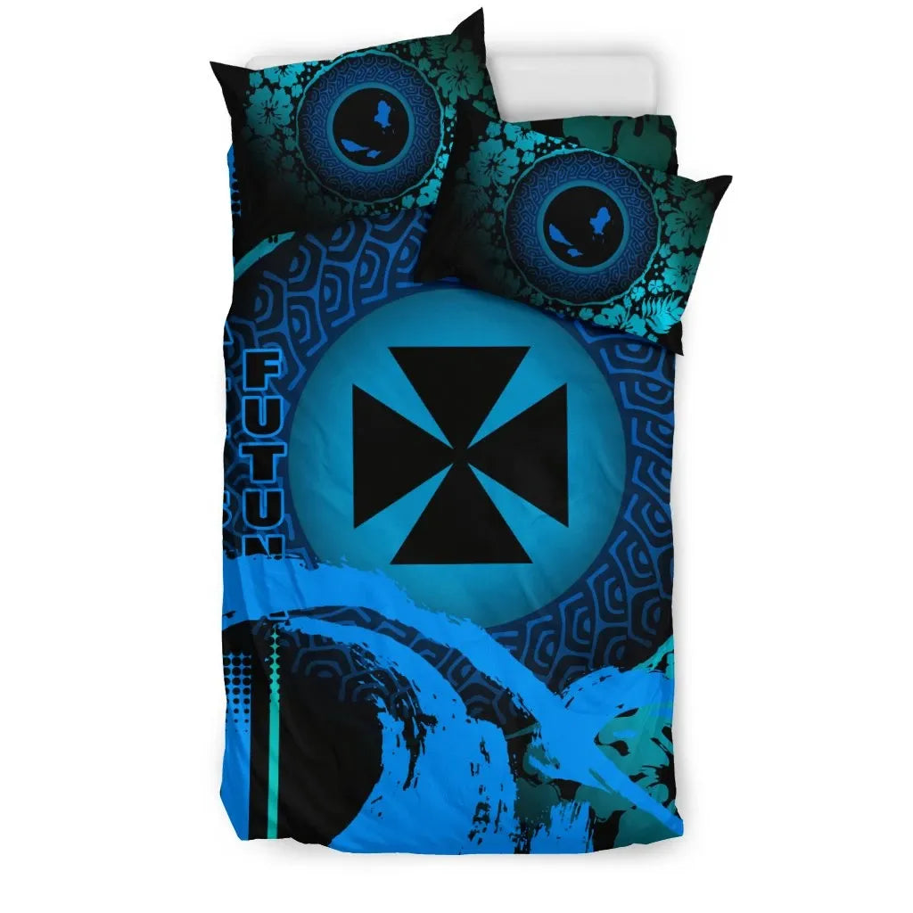 Wallis And Futuna Duvet Cover Set - Hibiscus And Wave Navy