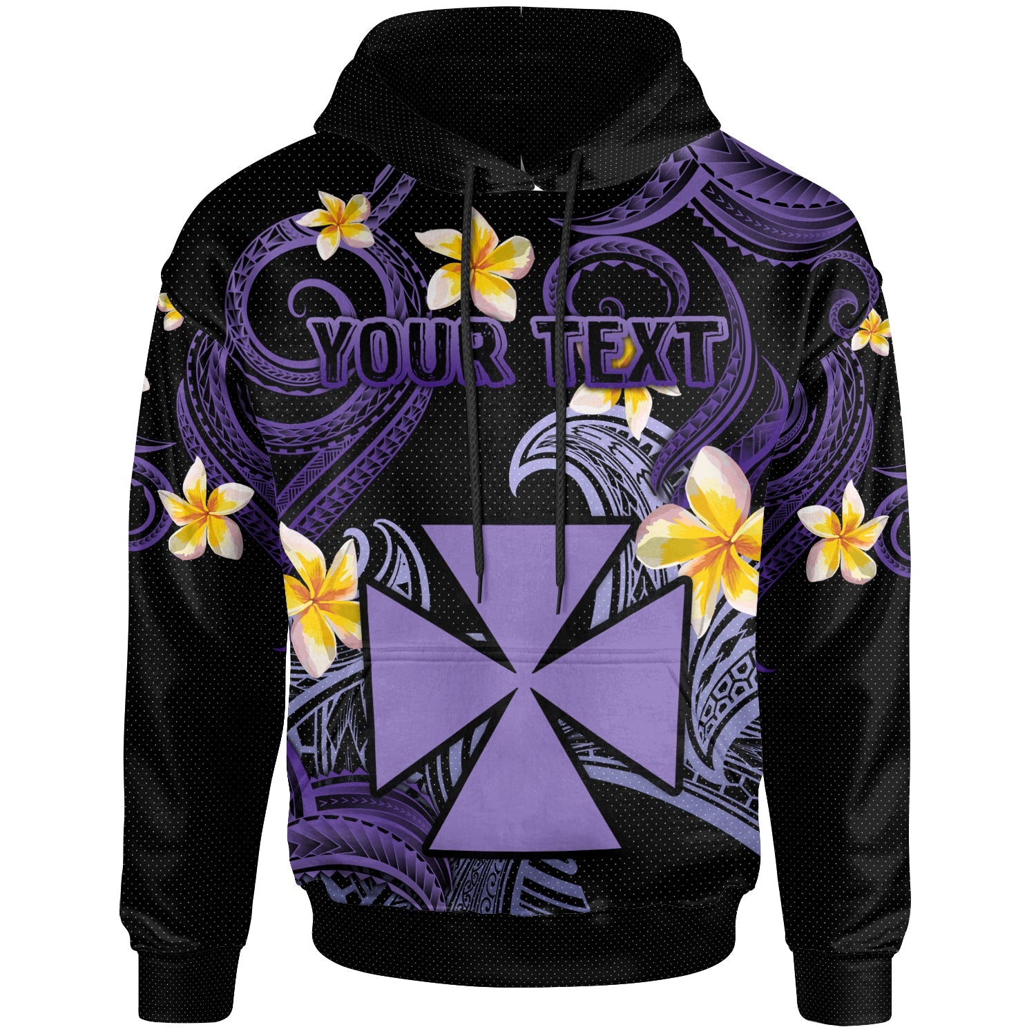 Wallis and Futuna Hoodie - Custom Personalised Polynesian Waves with Plumeria Flowers (Purple)