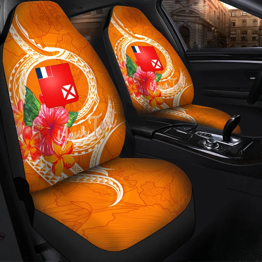 Wallis And Futuna Polynesian Custom Personalised Car Seat Covers - Orange Floral With Seal