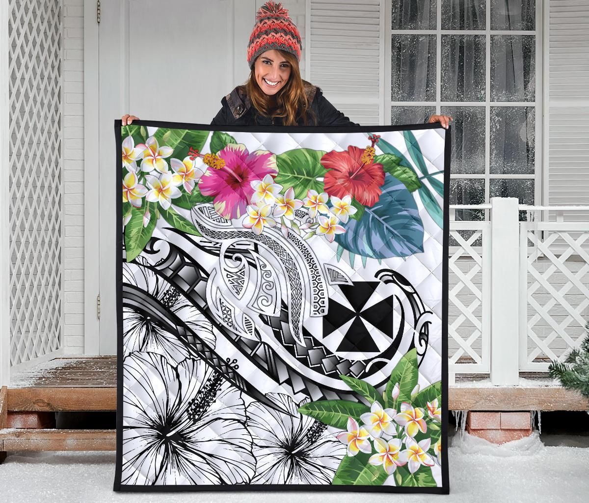 Wallis and Futuna Polynesian Premium Quilt - Summer Plumeria (White)