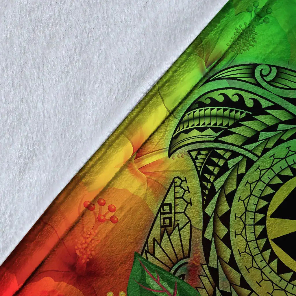 Wallis and Futuna Premium Blanket - Manta Ray Tropical Flowers (Green)