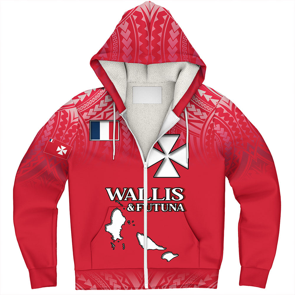 Wallis And Futuna Sherpa Hoodie Flag Color With Traditional Patterns