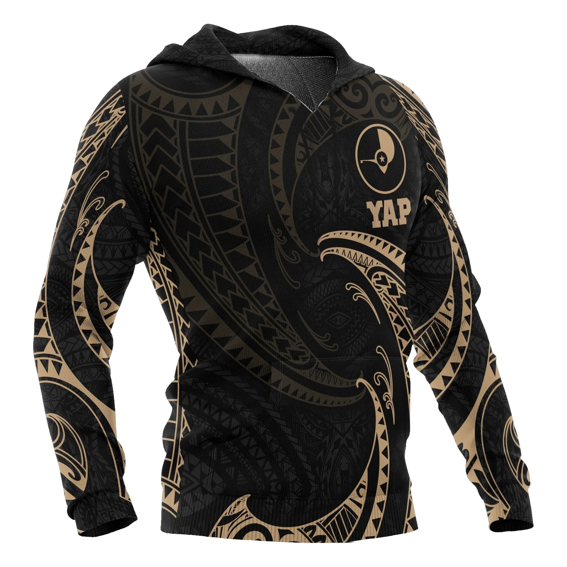 Yap Micronesia ll Over Hoodie - Gold Tribal Wave