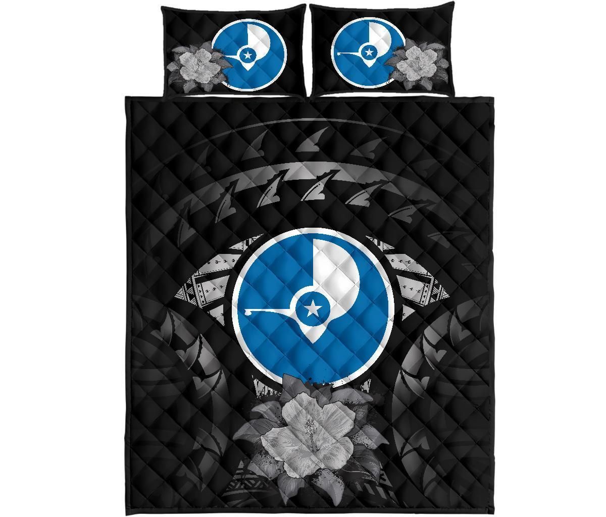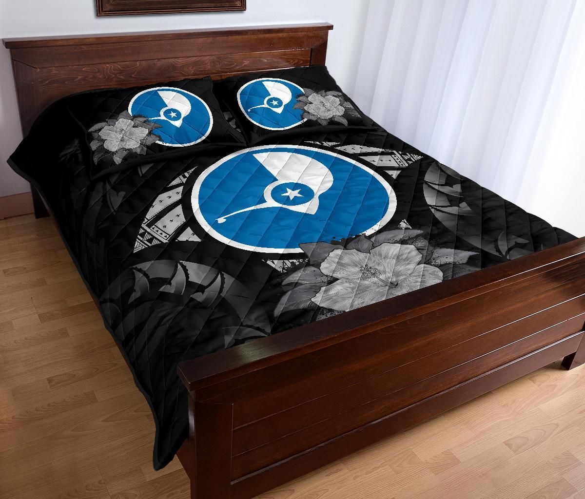 Yap Polynesian Quilt Bed Set Hibiscus Gray