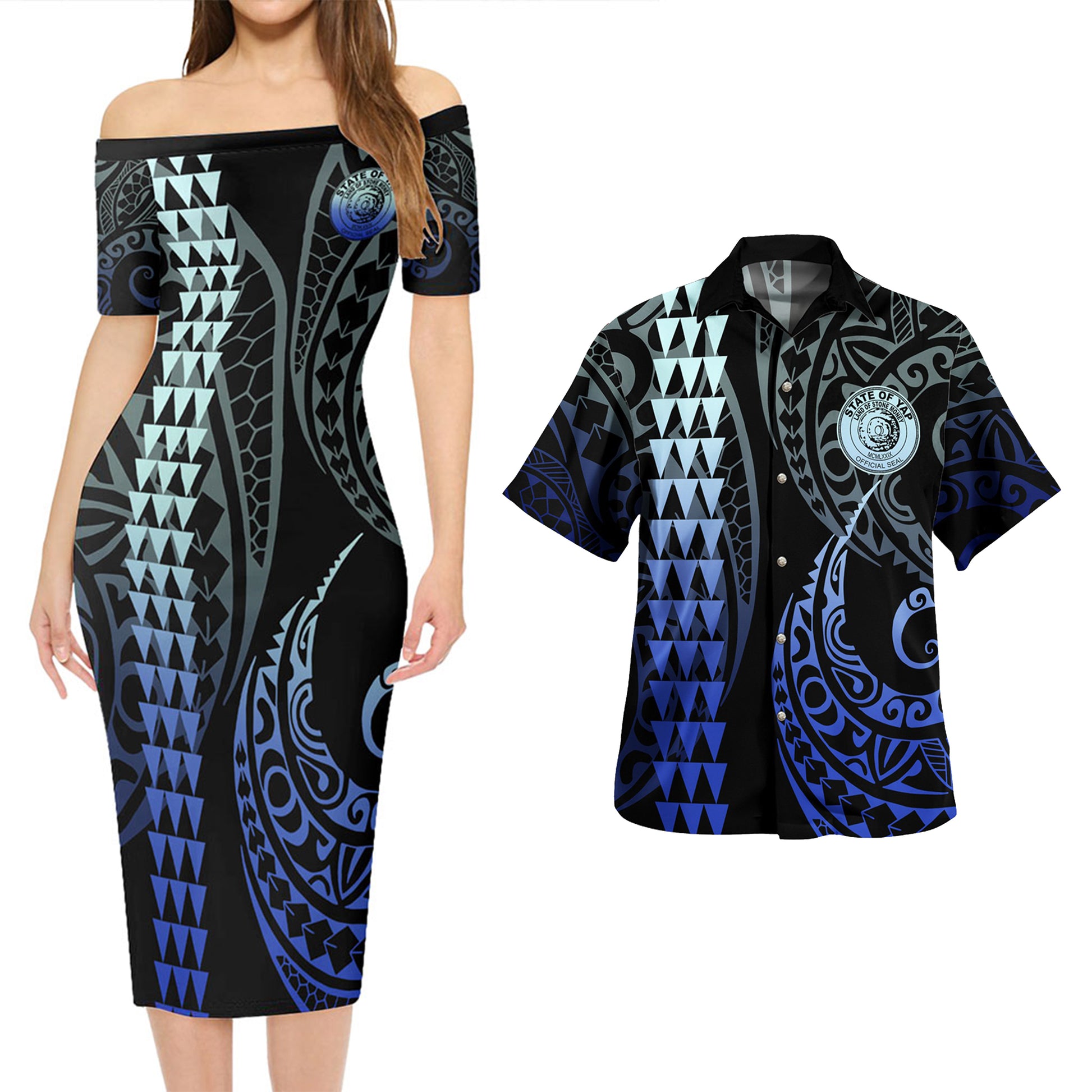 Yap State Combo Short Sleeve Dress And Shirt Kakau Style Gradient Blue