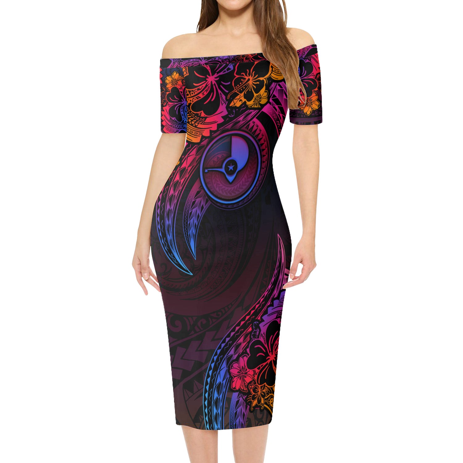 - Our Women Off Shoulder Long Dress and Hawaiian Shirts made of 95% Polyester and 5% spandex manufactures high-quality thermal-transfer printed products and keeps you comfortable, cool, and dry while you work and play.